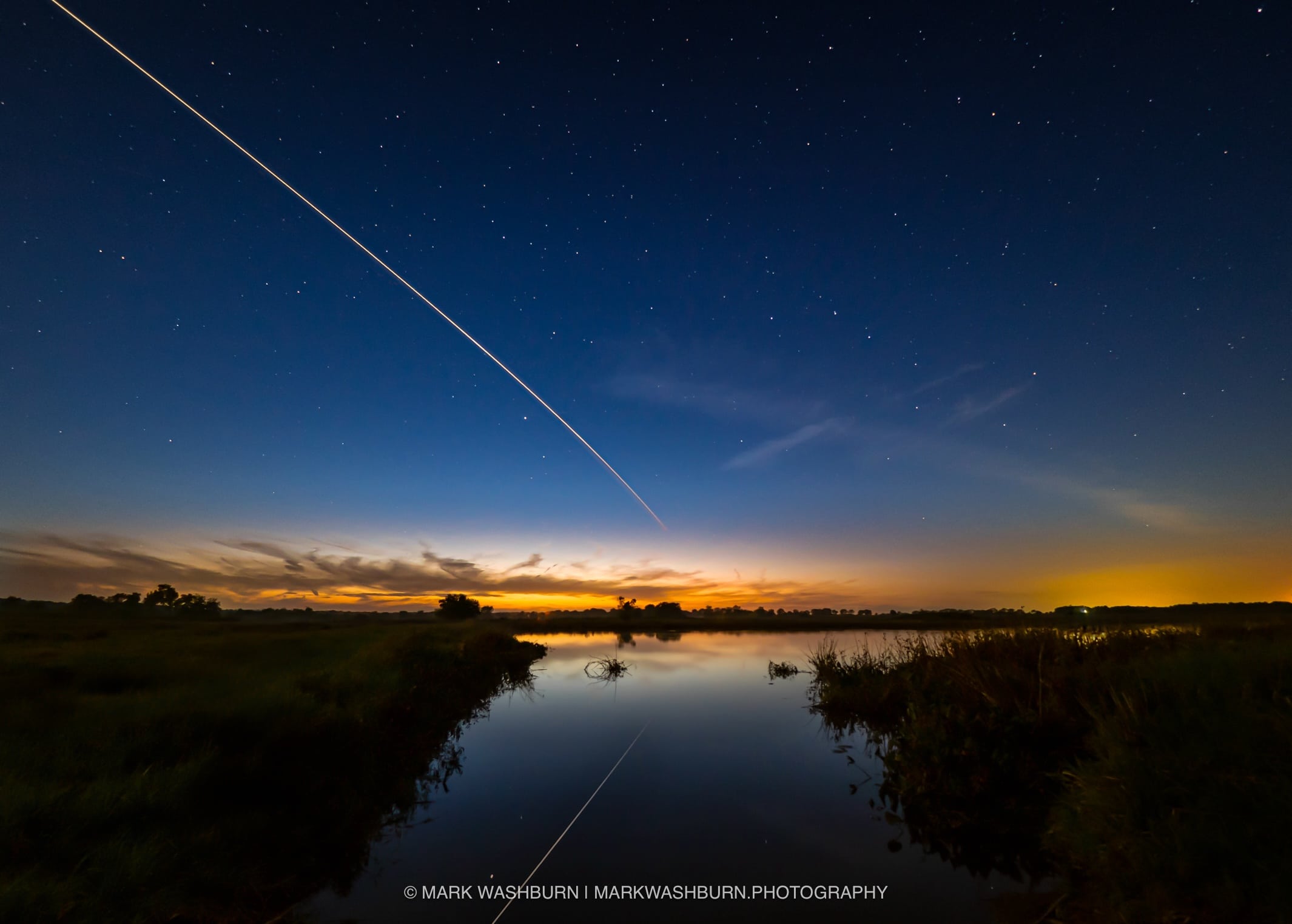 On this evening, I went out to a local marsh to see if i could pick it up and use a method that would show the path of the station in one solid line. In doing this I had to separate the stars out as they would trail a bit after 6 minutes of tracking.