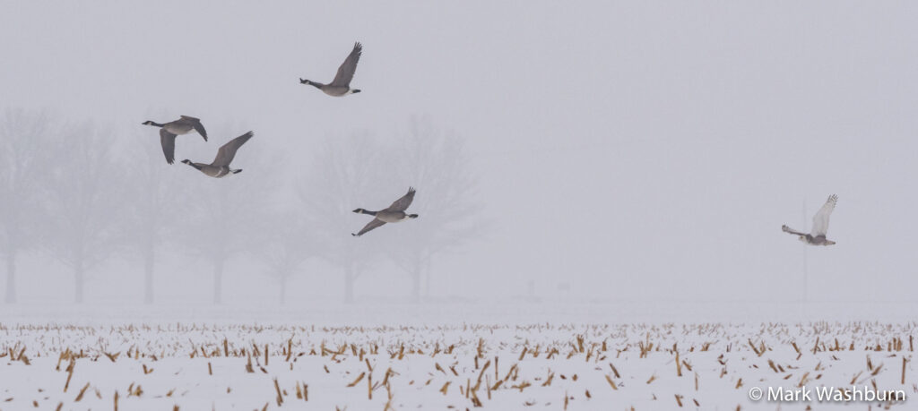 A light-hearted chase of geese by a Snowy Owl