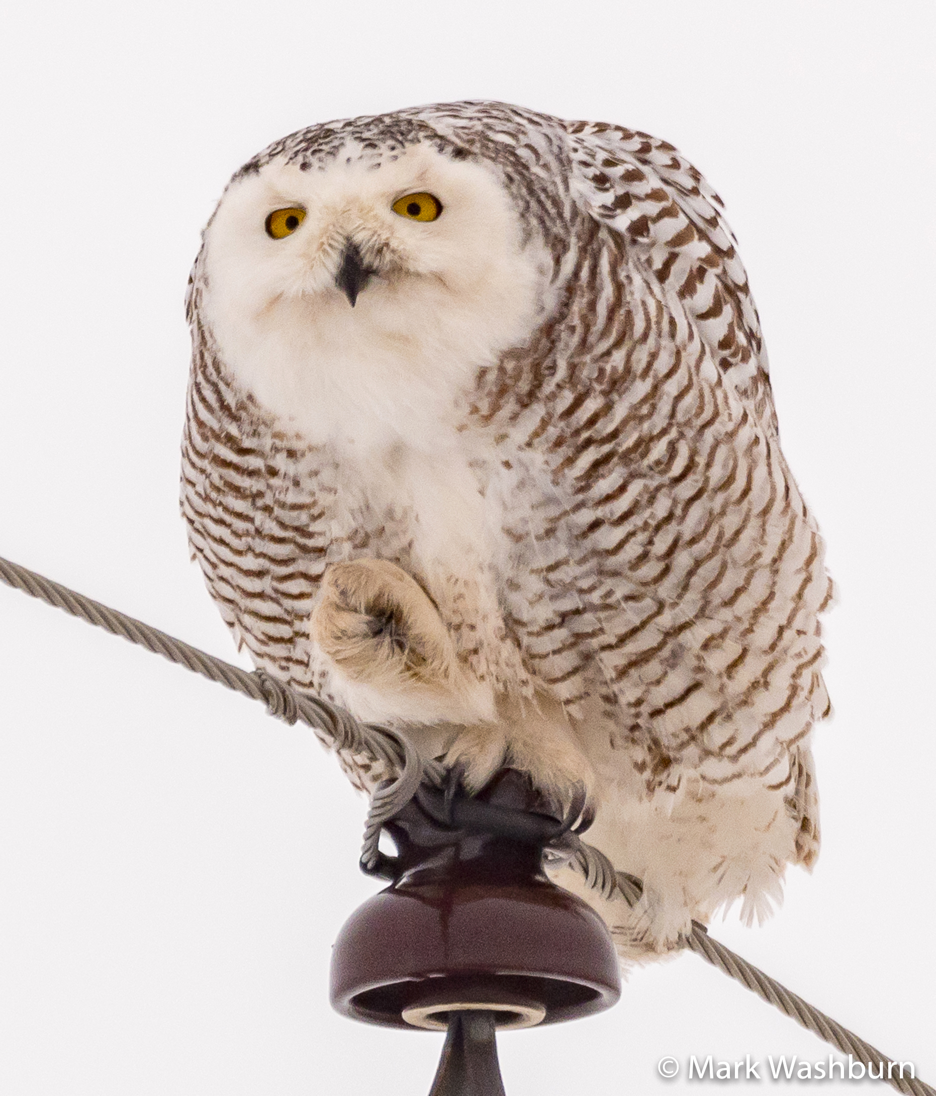 There is a sad reality, to having a bird from the arctic tundra, spending time in the industrialized midwest. The arctic after all is fairly flat, virtually treeless, and devoid of fences, power lines, vehicle traffic, and pretty much everything we find as commonplace in Iowa.