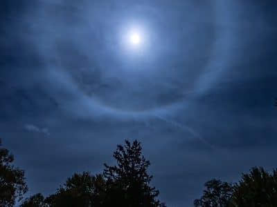 I may have seen a lunar halo once or twice over the years, but this one kind of stood out to me. Very well defined and clear to the naked eye. So…I had to try and take a picture. The halo is caused by the refraction of moonlight though ice crystals in high-altitude cirrus clouds.…