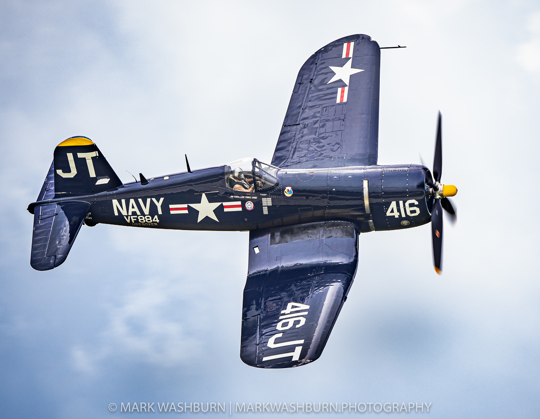 I’ve been to many airshows over the years…with the vast majority being in the Quad City area. Over the 30+ year period, a number of warbirds have flown over the Davenport skies…but one of the most beautiful would have to be this F4U-4 Corsair, nicknamed the Korean War Hero. As you might guess this plane flew combat missions in the Korean war, over 200 in fact. It was beautifully restored over a 10 year period by Joe and Jim Tobul, with the first post restoration flight on December 8th, 1991. Jim is still flying it in airshows to this day.