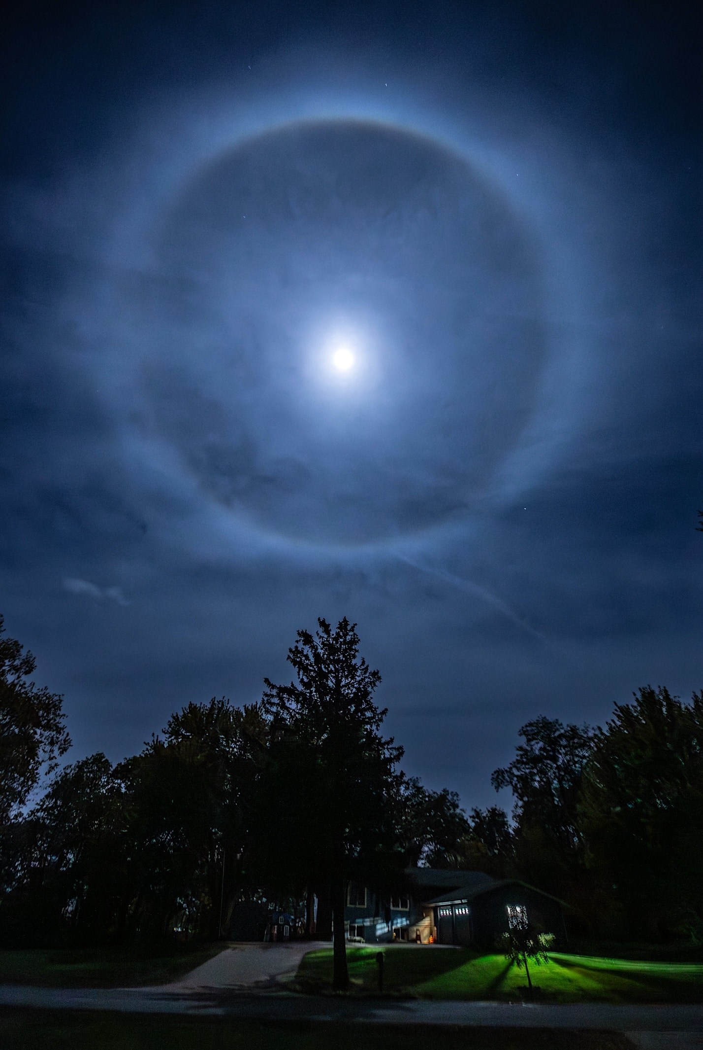 I may have seen a lunar halo once or twice over the years, but this one kind of stood out to me. Very well defined and clear to the naked eye. So…I had to try and take a picture.