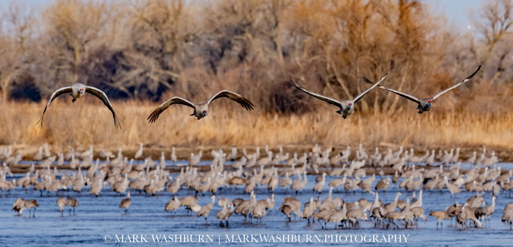 In their grand, morning departure, the sandhill cranes of the Platte, will often leave in waves…sometimes in small groups, like this quartet, and at other times, in large masses of birds. It is a daily ritual that is sure to overload the senses of anyone who has never witnessed it first hand. It’s a spectacle of nature that should be on everyone’s bucket list. Research the Rowe Audubon Sanctuary, or the Crane Trust, for more information.