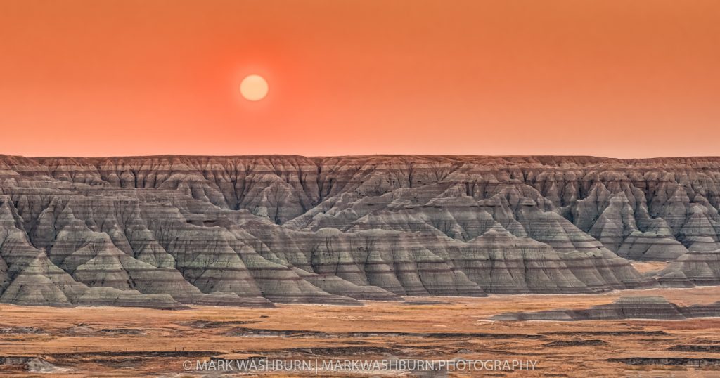 When you visit the west in the late summer or early fall, there’s a good chance you’ll run into some smoke from wildfires…it’s just been a common thing over the last few years. On this morning in August in Badlands National Park, the sunrise was dramatically diffused by the hazy smoke. Sunsets too would end up with just a glowing orange ball on the horizon. Taking shots of the Milky Way at night were out, but mornings and evenings could be dramatic…and they provided this kind of surreal, lunar look, that would be tough to get at any other time.